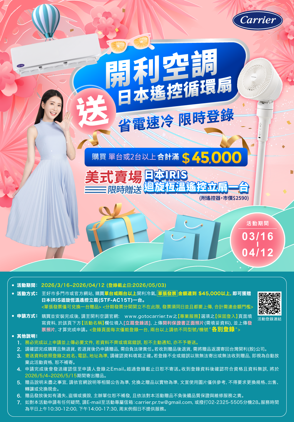 開利凍漲再折價!!再送日本IRIS立扇及HEPA濾網,最高省$15000!!